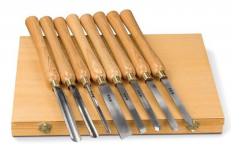 Набор токарных резцов по дереву из 8 шт. Резцы в наборе различного профиля, изготовлены из быстрорежущей стали. Длина резцов (рукоятка х лезвие) 23x16,5 см - 5 шт., 23x16 см - 3 шт. Материал полотна — закалённая HSS хромованадиевая сталь.